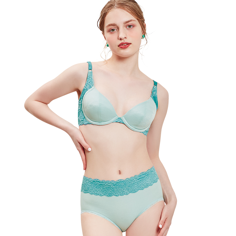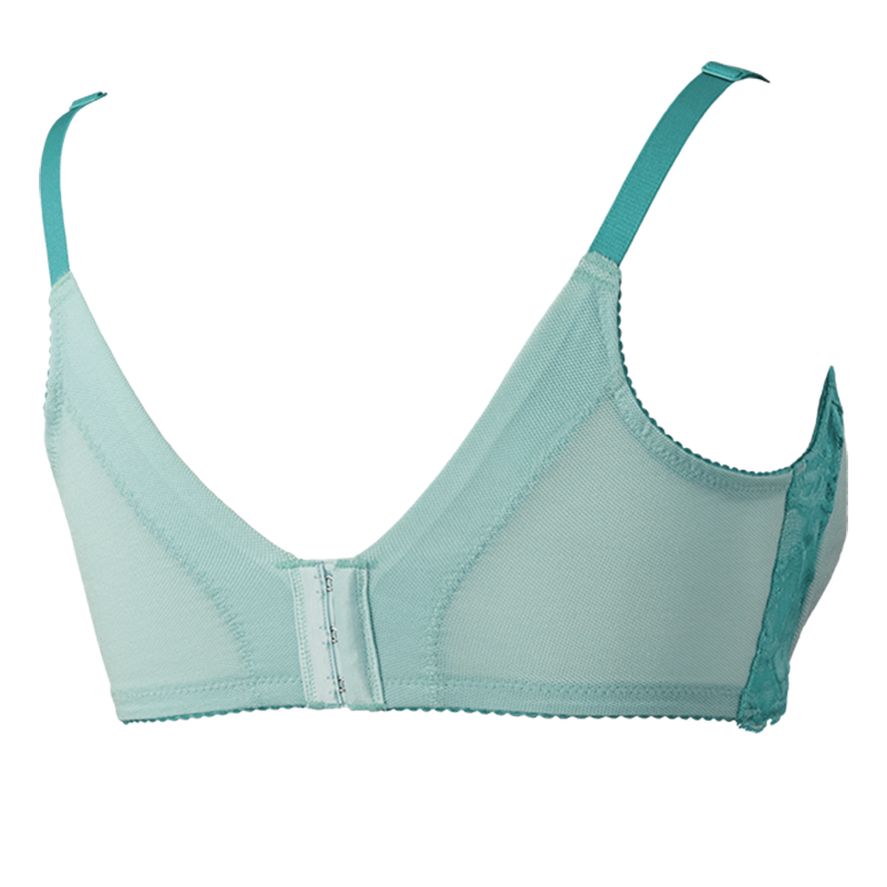 身生地にはメッシュ調の肌触りの良い生地を、デザインのポイントとなるレースにはリバーレースを使用。