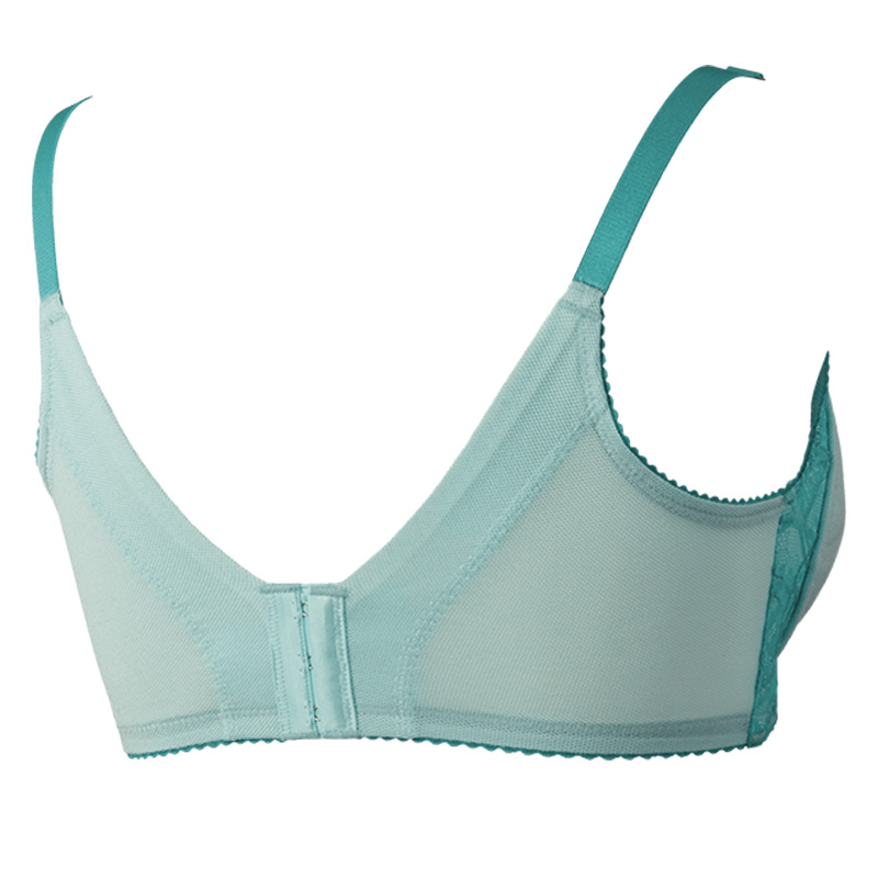 身生地にはメッシュ調の肌触りの良い生地を、デザインのポイントとなるレースにはリバーレースを使用。