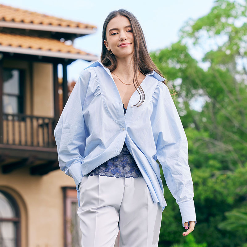 | シェイプキャミとブラジャーを一体化。 3/4カップがバストをしっかり寄せ、中心のワイヤー位置を高くすることでくっきりとしたバージスラインを作ります。 大きめのリフトパネルでバストをサイドから持ち上げ、バスト上部にハリを持たせて美しいバストづくりをします。 また、腹部フロントとサイドの裏当てにはパワーネットを重ね、気になるお肉をホールドして、ウエストをしっかりシェイプします。 |
